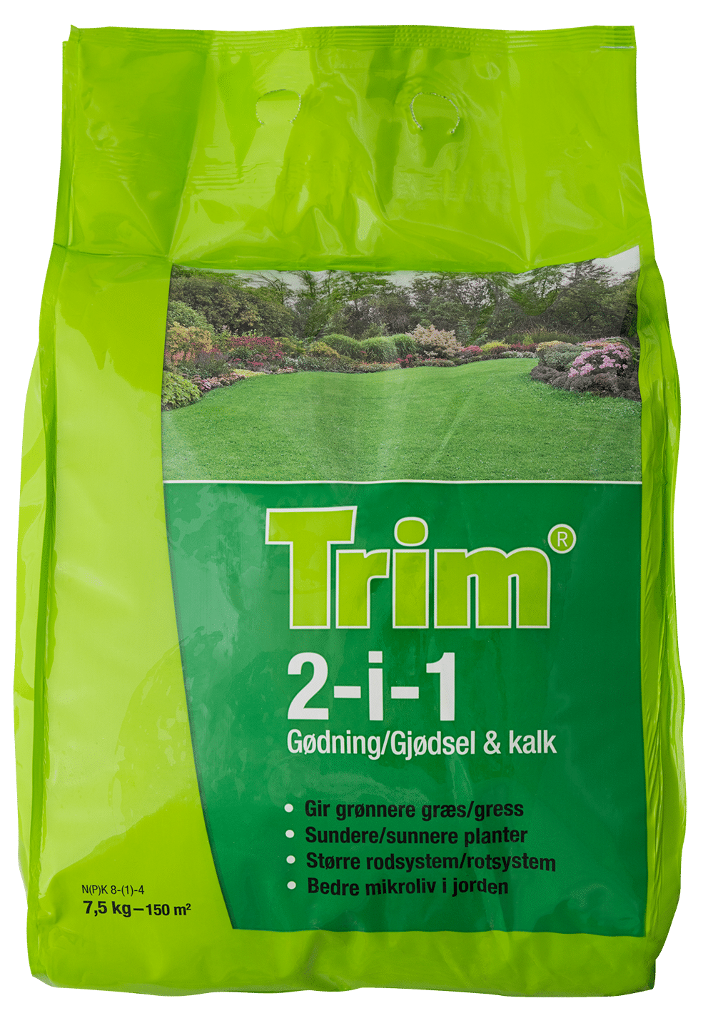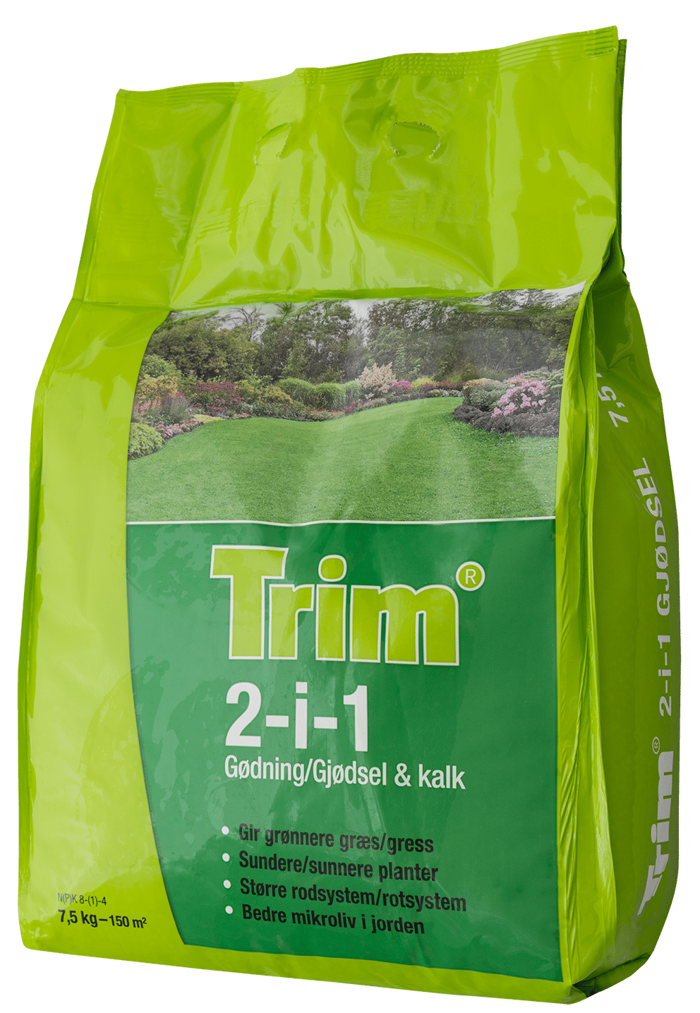 Trim er en fremragende gødning til hele haven. Trim er også ideel til køkkenhaver og bede, da den har et lavt klorinhold, og kalken forhindrer forsuring. Kalken forbedrer jordens pH-værdi, hjælder med at opretholde en god jordstruktur og tilfører kalk. På den måde udnyttes næringsstofferne i jorden optimalt, planterne bliver mere frodige, forbliver sundere og græsset bliver grønnere. OBS! Må ikke anvendes på rhododendron og andre planter med sur jordbund, der ikke har brug for kalk.