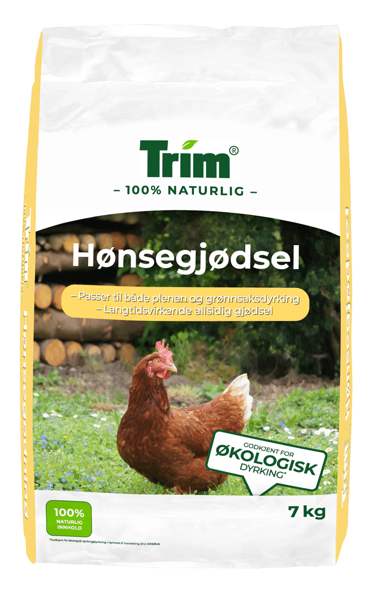 Trim Hønsegødning er en naturgødning til hele haven, og som tilfører næring og forbedrer jorden.